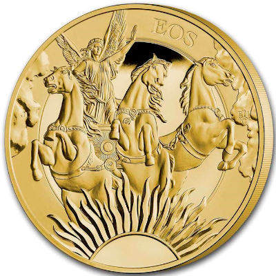 Die Göttin Eos (auch bekannt als Aurora in der römischen Mythologie) ist eine Göttin der griechischen Mythologie, die mit dem Morgenlicht und dem Sonnenaufgang in Verbindung gebracht wird. Sie wird oft als eine junge Frau mit goldenem Haar und Flügeln dargestellt und ist die Tochter von Hyperion und Theia. Eos ist bekannt für ihre Liebe zu männlichen Göttern und Sterblichen. Sie hatte zahlreiche Liebhaber, darunter Tithonus, den sie mit unsterblicher Schönheit begabte, aber nicht mit Unsterblichkeit, was dazu führte, dass er im Laufe der Zeit immer älter und schwächer wurde, bis er schließlich zu einer Grille wurde. In der griechischen Mythologie wird Eos oft als gütige und schöne Göttin beschrieben, die den Menschen Licht und Hoffnung bringt. Sie wird auch als Beschützerin der jungen Liebenden und der Reisenden angesehen. Besondere Merkmale: • Eine limitierte Auflage von 1.000 Münzen weltweit • 1/4 Unze 9999er Feingold • Prägequalität Stempelglanz BU Technische Daten: Ausgabeland: St. Helena Prägeanstalt: The East India Company Ausgabejahr: 2023 Nennwert: 2 GBP Pfund Material: Gold Gewicht: 7,77575g Durchmesser: 22,50 mm Auflage: 1.000 Stück Prägequalität: Stempelglanz BU Verpackung: Gekapselt im Original-Etui und Echtheitszertifikat |