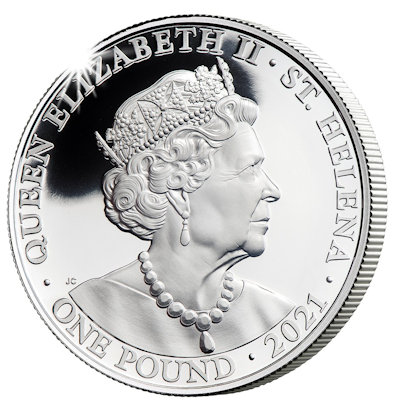 <<< St. Helena - 1 Pfund The Queens Virtues: Victory 2021 - 1 Oz Silber PP