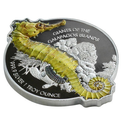 Von der PAMP kommt diese wunderschöne Tierserie mit dem Titel Giants of the Galapagos Islands (Giganten der Galapagos Inseln) und zeigt in der Erstausgabe das Giant Seahorse (Hippocampus ingens) auch als Pazifik Seahorse oder zu deutsch Pazifik Seepferd bekannt. Die wunderschön gestalteten Münzen sind nicht nur in höchster Prägequalität Polierte Platte (Reverse Proof) geprägt sondern auch in einer Shaped Prägung und hochwertig mit schimmernden Farbverläufen coloriert, so dass das abgebildete Tier besonders gut zur Geltung kommt. Es wurde 1 Oz reinstes 9999er Feinsilber verwendet. Die Münze ist gekapselt und wird im Originalblister mit vielen weiteren Informationen. Die Auflage beträgt jeweils 2.500 Stück weltweit und ist strikt limitiert!