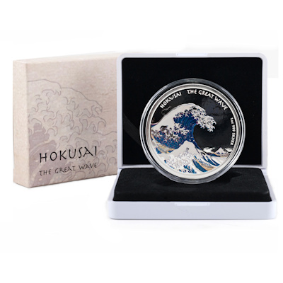 2016 startete die Silbermünzen Serie von den Fiji Inseln mit dem passenden Motiv die Große Welle (The Great Wave) basierend auf dem Kunstwerk des japanischen Künstlers Hokusai, geprägt ist aber bereits die Jahreszahl 2017. Die Bullion Ausgabe ist in der Prägequalität Proof-like geprägt, besteht aus 1 Oz Feinsilber in der Reinheit 999 und ist auf nur 50.000 Stück weltweit streng limitiert. Die Münzen sind gekapselt und zusätzlich verschweißt. Des Weiteren gibt es noch eine Ausgabe in der höchsten Prägequalität Polierte Platte und Coloriert mit Umverpackung und Original-Etui und limitiert auf nur 2.500 Stück weltweit.