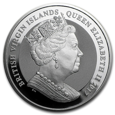 Es handelt sich hier um die 2017er Ausgabe und erste 1 Oz Feinsilber Anlagemünze der Britisch Virgin Islands. Die Münzen bestehen aus 999er Feinsilber und sind in Reverse Proof gefertigt und auf nur 50.000 Stück weltweit streng limitiert.