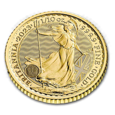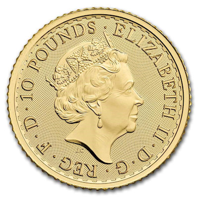 Seit bereits 1987 wird die Britannia auch in Gold von der Prägeanstalt The Royal Mint mit einer Feinheit von 916,67/1000 bzw. seit 2013 mit einer Feinheit von 999,9/1000 verausgabt. Das Motiv wechselt ähnlich wie bei der Silber Variante jährlich. Die Münze ist in den Stückelungen 1/10 Oz, 1/4 Oz, 1/2 Oz und 1 Oz verfügbar. Beschreibung zur Münze: