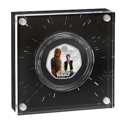 Dies ist die 4. Star Wars(TM) Ausgabe der Royal Mint. Die 8g Münze in 925er Silber zeigt Han Solo und Chewbacca.