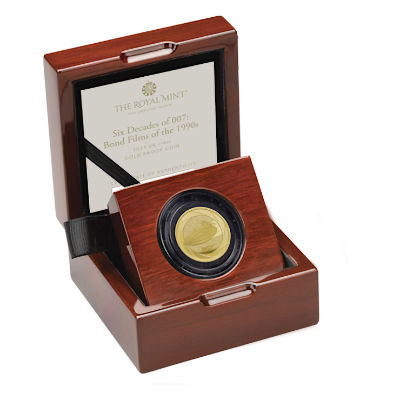Dies ist die vierte Ausgabe einer Serie der Royal Mint, die das bleibende Vermächtnis von James Bond feiert, Six Decades of 007. Diese Münzenserie zeigt jeweils eine ikonische Szene von Bond Filmen, die aus jedem Jahrzehnt ausgewählt wurde. Das vierte Design zeigt das Schnellboot von Q Branch aus der Themse-Szene in Die Welt ist nicht genug aus dem Jahr 1999.