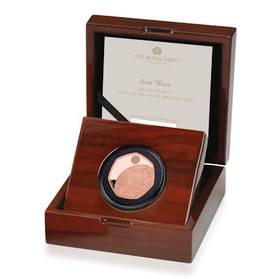 | <<< Großbritannien - 50 Pence Star Wars(TM) Todesstern (Death Star) 2024 - 1/2 Oz Gold PP | |