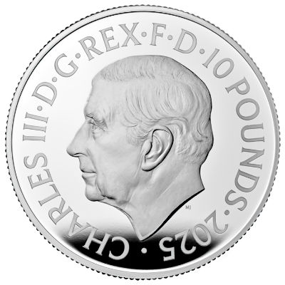 Technische Daten: Ausgabeland: Großbritannien Prägeanstalt: The Royal Mint Ausgabejahr: 2025 Nennwert: 10 Pfund Material: Silber Gewicht: 156,30000g Durchmesser: 65,00 mm Auflage: 250 Stück Prägequalität: Polierte Platte Verpackung: Gekapselt im Original-Etui und Echtheitszertifikat |