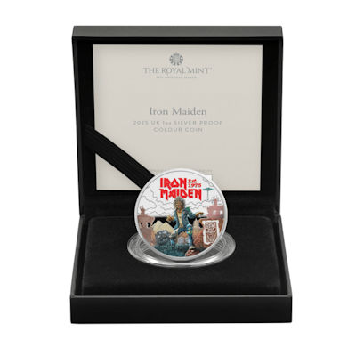 Im Laufe der letzten 50 Jahre sind Iron Maiden nicht nur zu Ikonen ihres Genres geworden, sondern auch zu wahren Musiklegenden, die die Branche überdauert haben. Mit 17 Studioalben voller Klassiker, die den Test der Zeit bestehen, ist ihre Fangemeinde eine der größten und treuesten der Welt. Zur Feier des 50-jährigen Bestehens der Band ehrt die Königliche Münze einen der größten Exporte des Vereinigten Königreichs mit einer britischen Münze, die von dem legendären Iron Maiden-Künstler Alberto "Akirant" Quirantes gestaltet wurde.
