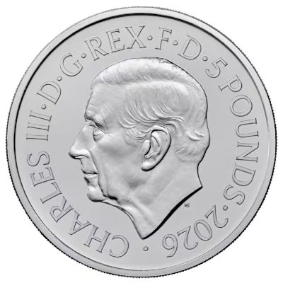 Technische Daten: Ausgabeland: Großbritannien Prägeanstalt: The Royal Mint Ausgabejahr: 2026 Nennwert: 5 GBP Pfund Material: Kupfer/Nickel Gewicht: 28,28000g Durchmesser: 38,61 mm Prägequalität: Stempelglanz BU Verpackung: Verpackt im Original-Blister |