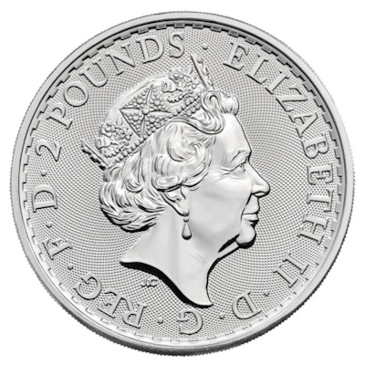 Seit 1997 verausgabt die The Royal Mint aus Großbritannien die Anlagemünze Britannia mit einem Nennwert von 2 Pfund (GBP). Die Münzen wurden ursprünglich in einer Reinheit von 958/1000 geprägt und einzeln verpackt ausgeliefert. Seit 2013 hat sich die Serie den internationalen Standards von Anlagemünzen angepaßt und wird in 999/1000 Feinsilber produziert sowie zu 20 Stück in Kunststofftubes verausgabt. Besonderheit der Britannia ist, das alle Ausgaben mit einer geraden Jahreszahl das selbe Motiv mit der Britannia und Schild haben, während die Jahrgänge dazwischen mit wechselnden Motiven strahlen. 1997 und 1999 waren die Motive wiederum identisch.