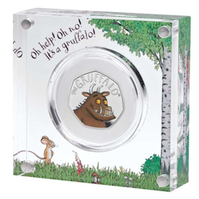 Es handelt sich hier um die erste Sammlermünze überhaupt, auf der der Grüffelo (The Gruffalo) verewigt ist. Die beliebte Geschichte begeistert bereits seit 20 Jahren Kinder und gehört wohl zu den beliebtesten Gute-Nacht-Geschichten. Die in höchste Prägequalität Polierte Platte verausgabte Sterling-Silber-Münze kommt im Original 20 Jahre Jubiläums Etui mit Umverpackung und Echtheitszertifikat. Die Ausgabe ist auf insgesamt 30.000 Stück begrenzt.