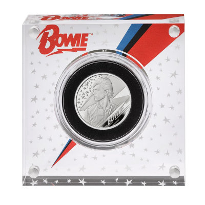 In der Münzserie Music Legends verausgabt die The Royal Mint als 3. Ausgabe David Bowie. Es handelt sich hier um die Ausgabe in 1/2 Oz Feinsilber, geprägt in der höchsten Prägequalität Polierte Platte und limitiert auf nur 12.500 Stück weltweit. Die Auslieferung erfolgt gekapselt im Original-Etui mit nummeriertem Echtheitszertifikat und Umverpackung.