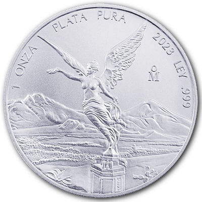 Der Libertad (Freiheit) ist eine der weltweit bekanntesten und in Silber auch die älteste moderne Anlagemünze und wird in Gold (seit 1981)und in Silber (seit 1982) in vielen verschiedenen Größen sowie in Stempelglanz als auch in Polierter Platte (Proof) geprägt. Verkauft wird diese wunderschöne Anlagemünze von der Banco de Mexico, geprägt von der staatlichen Prägeanstalt Casa de Moneda de Mexico. Die Münze trägt, wie der Krügerrand auch, keinen Nennwert. Dieser wird immer aktuell durch den Materialwert festgelegt. Somit ist diese Münze auch ohne Nennwert gesetzliches Zahlungsmittel in Mexiko. Das Motiv der Münze wurde im Jahr 1996 überarbeitet, dabei hat sich auch der Durchmesser geändert. Zu sehen ist jedoch nach wie vor die Siegesgöttin vor den beiden Vulkanen Iztaccíhuatl und Popocatépetl. Das Motiv entstand inspiriert durch das Denkmal El Ángel de la Independencia in Mexiko-Stadt. |