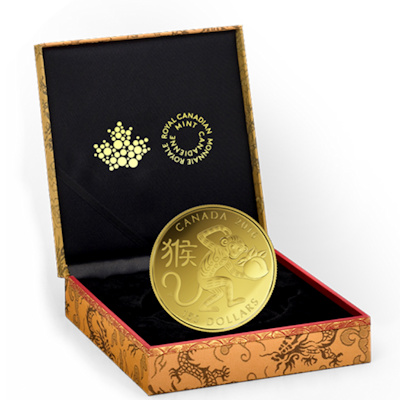 Es handelt sich hier um die Ausgabe zum Jahr des Affen (2016) mit einem Nennwert von 150 CAD. Die Münze besteht aus gut 8,88g Gold sowie der höchsten Prägequalität Polierte Platte und wird im Originaletui der Royal Canadian Mint mit nummeriertem Echtheitszertifikat ausgeliefert. Diese Ausgabe ist auf weltweit 2.500 Stück limitiert.