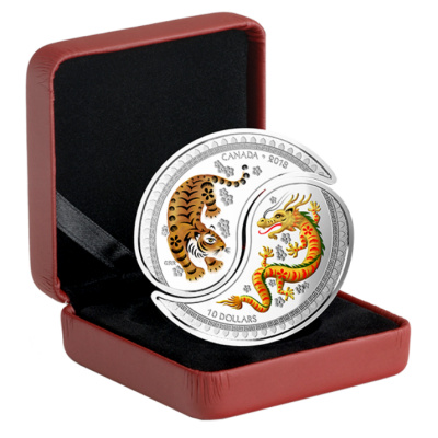 Diese wunderschöne Münzausgabe, ganz im mystischen Zeichen des anstehenden Neujahrsfests in China zeigt den Tiger und Drachen im Yin & Yang vereinigt. Jede Münze besteht aus 1/2 Oz Feinsilber in der höchsten Reinheit 99,99% und ergibt somit zusammen 1 Oz Pures Silber. Die Münze sind in der höchsten Prägequalität Polierte Platte geprägt, aufwendig coloriert und auf nur 6.000 Stück weltweit streng limitiert. Die Auslieferung erfolgt im Original-Etui mit Umverpackung und nummeriertem Echtheitszertifikat.
