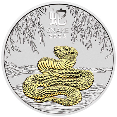 <<< Australien - 1 AUD Lunar III Schlange 2025 - 1 Oz Silber Gilded | |