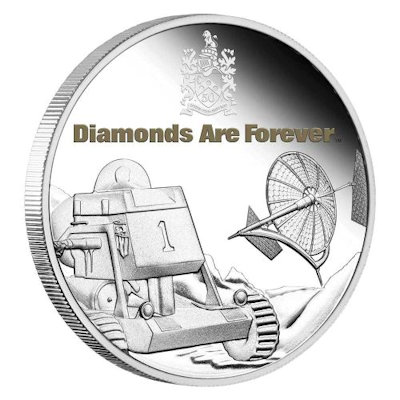 Mond-Buggy-Design Die Münze zeigt eine Darstellung von Blofelds Satelliten und dem legendären Moon Buggy, in dem Bond aus Willard Whytes Tectronics Space Center in der Wüste von Nevada entkommt. Ebenfalls im Design zu sehen ist das Wappen der Familie Bond mit dem Motto ORBIS NON SUFFICIT (die Welt ist nicht genug) und der Zahl 50 sowie der Aufschrift DIAMONDS ARE FOREVER. Die Münze besteht aus 1 Oz Feinsilber in der höchsten Prägequalität Polierte Platte und ist auf nur 5.000 Stück streng limitiert. Die Auslieferung erfolgt im Original-Etui mit Umverpackung und nummeriertem Echtheitszertifikat. |