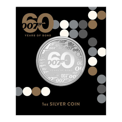 Der wohl weltweit berühmteste Geheimagent, James Bond 007, feiert sein 60. Jubiläum und die The PerthMint Australia würdigt ihm eine eigene Jubiläumsausgabe. Höchste Prägequalität Polierte Platte und coloriert zeigt die in Barrenform geprägte Münze das bekannte 007 Logo. Nur die geringe Stückzahl von 300 Stück dieser Ausgabe wird verausgabt und jeder James Bond Fan und Münzsammler dürfte sich in ein paar Jahren ärgern, die Ausgabe verpasst zu haben!