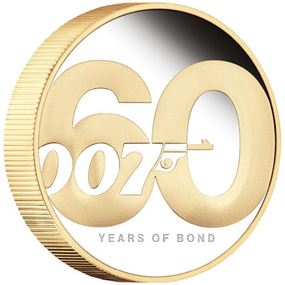 Der wohl weltweit berühmteste Geheimagent, James Bond 007, feiert sein 60. Jubiläum und die The PerthMint Australia würdigt ihm eine eigene Jubiläumsausgabe. Höchste Prägequalität Polierte Platte und hochwertig vergoldet zeigt geprägte Münze das bekannte 007 Logo. Nur eine begrenzte Stückzahl dieser Ausgabe wird verausgabt und jeder James Bond Fan und Münzsammler dürfte sich in ein paar Jahren ärgern, die Ausgabe verpasst zu haben!