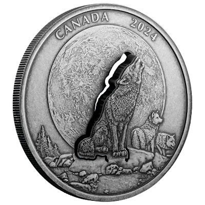 <<< Kanada - 30 CAD Der Heulende Wolf 2024 - 2 Oz Silber Antik Finish | |