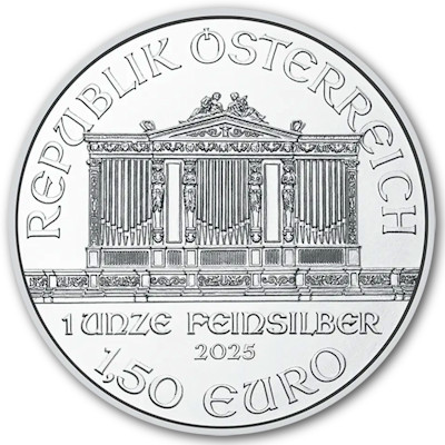 <<< Österreich - 1,5 EUR Wiener Philharmoniker 2025 - 1 Oz Silber | |