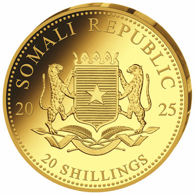 <<< Somalia - 20 Shillings Leopard 2025 - 0,5g Gold | |