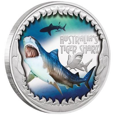 <<< Tuvalu - 1 TVD Deadly & Dangerous Tigerhai 2023 - 1 Oz Silber PP Color | |