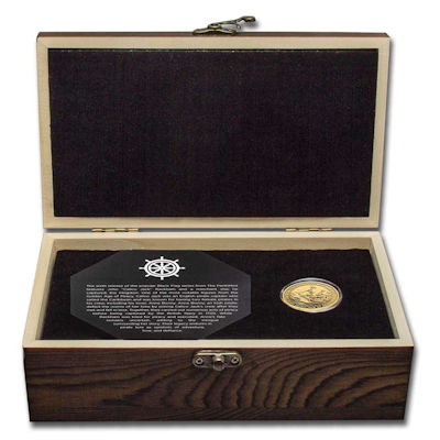 Es handelt sich hier um die 6. Ausgabe der Black Flag Serie, geprägt von der The Perth Mint Australia. Diese 1 Oz schwere Feingoldmünze zeigt das Motiv der The Kingston.