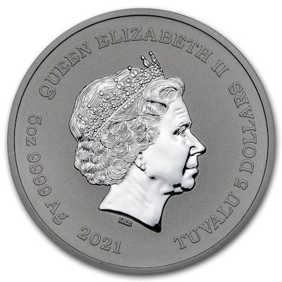 Highlights: Enthält 5 Unze .9999 Feinsilber. Verpackt in einer Schutzkapsel. Nennwertseite: Enthält das Ian-Rank-Broadley-Abbild Ihrer Majestät, Königin Elizabeth II., Die Währungsbezeichnung, das Gewicht und den Feingehalt der Münze sowie das Jahresdatum 2020. Es handelt sich um ein gesetzliches Zahlungsmittel von Tuvalu. Technische Daten: Ausgabeland: Tuvalu Prägeanstalt: The PerthMint Australia Ausgabejahr: 2021 Nennwert: 5 TVD Material: Silber Gewicht: 155,51500g Durchmesser: 60,60 mm Dicke: 7,20 mm Auflage: 500 Stück Prägequalität: Brilliant Uncirculated Verpackung: Gekapselt |