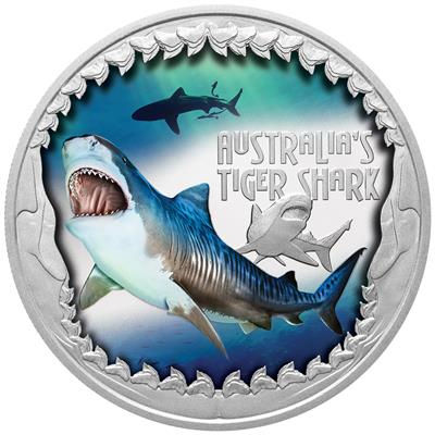 Tuvalu - 1 TVD Deadly & Dangerous Tigerhai 2023 - 1 Oz Silber PP Color | ||