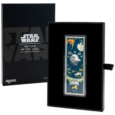 Dieses Original Star Wars(TM) Poster von Die Rückkehr der Jedi-Ritter(TM) kommt als 3 Oz Feinsilbermünze in der höchsten Prägequalität Polierte Platte mit aufwendiger Kolorierung. Die Auflage ist weltweit auf nur 800 Stück streng limitiert.