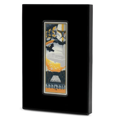 Dieses Original Star Wars(TM) Poster von Angriff der Klonkrieger(TM) kommt als 3 Oz Feinsilbermünze in der höchsten Prägequalität Polierte Platte mit aufwendiger Kolorierung. Die Auflage ist weltweit auf nur 800 Stück streng limitiert.
