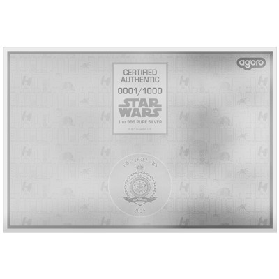 Beschreibung zur Münze: STAR WARS™ Blueprints (6.) – 1 Oz Silber Münznote TIE Fighter/SF™Die STAR WARS™ Blueprints Münznoten-Serie der New Zealand Mint widmet sich den technischen Entwürfen legendärer Schiffe und Waffen aus dem STAR WARS™ Universum. Die sechste Ausgabe zeigt den gefürchteten TIE Fighter/SF™ der Ersten Ordnung. Geprägt aus 1 Unze 99,9% Silber in Stempelglanz-Qualität, präsentiert die Münznote in Farbe verschiedene Ansichten des TIE Fighters. Ein leuchtend blauer Hintergrund und rote Linien verbinden die technischen Bezeichnungen mit den entsprechenden Details am Sternenjäger. Entlang des unteren Randes ist die Gravur “TIE FIGHTER / SF – SIENAR-JAEMUS FLEET SYSTEMS” zu lesen. Auf der Rückseite erscheinen das STAR WARS™ Logo, das Wappen von Niue, Nennwert, Ausgabejahr, Gewicht, Feinheit sowie die individuelle Nummerierung. Der TIE/SF (Special Forces) ist ein fortschrittlicher Raumjäger der Ersten Ordnung, der ausschließlich von Elitepiloten geflogen wird. Ausgestattet mit zwei Sitzen für Pilot und Heckschützen, verbesserter Bewaffnung, Schilden und Hyperantrieb ist er für riskante Missionen bestens gerüstet – im Gegensatz zu Standard-TIEs. Diese offiziell von Lucasfilm Ltd.™ lizenzierte Münznote ist auf nur 1.000 Exemplare weltweit limitiert und wird in einer hochwertigen Blisterkarte ausgeliefert. Besonderheiten: