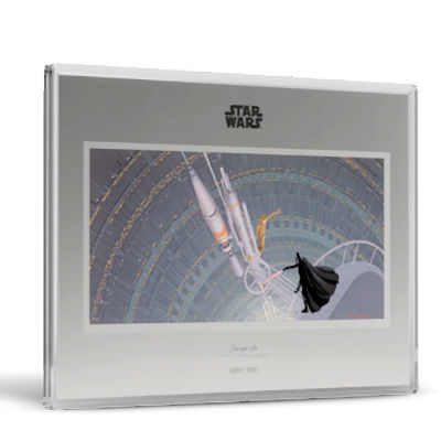Erleben Sie einen der legendärsten Momente der Star Wars(TM)-Geschichte anhand originaler Konzeptzeichnungen. Dieses Sammlerstück aus 1 Oz Feinsilber ist die erste Veröffentlichung der Star Wars(TM) Concept Art Serie und zeigt das dramatische Lichtschwert(TM)-Duell zwischen Darth Vader(TM) und Luke Skywalker(TM) auf dem Portal der Wolkenstadt(TM). Im Querformat und im Posterstil präsentiert, vereint dieses Stück leuchtende Farben, mattierte Silberoberflächen und eine filmreife Komposition zu einem Prunkstück für Ihre Sammlung. |