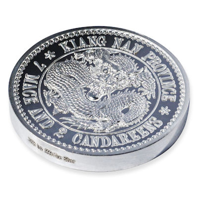 Ein Klassiker wird wiedergeboren. Die Kiangnan 7 Mace 2 Candareens Münze ist eine der begehrtesten historischen chinesischen Münzen und wurde in Form einer 1 Oz Feinsilbermünze in High Relief wieder zum Leben erweckt.
