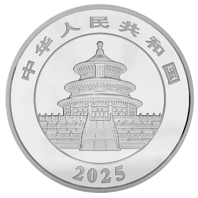 Seit 1983 wird die chinesische Anlagemünze Panda produziert. Wie auch bei den Gold Pandas zeigt hier die Rückseite den himmlischen Tempel in Beijing (Peking) und auf der Motivseite den Pandabären. Das Motiv wechselt jährlich. Nur 2001 und 2002 haben das selbe Motiv. Bis 1986 wurde der Silber Panda aus 900er Silber mit einem Gewicht von 27g geprägt. Ab 1987 dann als 1 Oz Feinsilbermünze