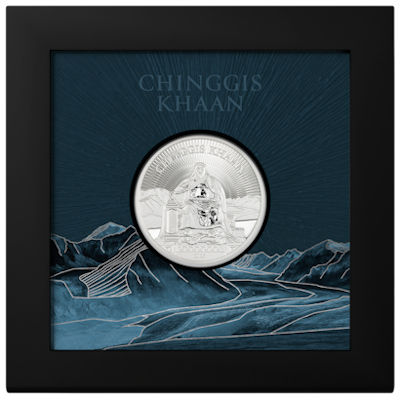 Diese 1 Oz Feinsilberausgabe ist Chinggis Khaan gewidmet.