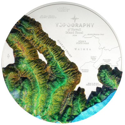 Aloha und willkommen auf Kauai, der Garteninsel Hawaiis! Die Vulkaninsel ist nicht nur berühmt für ihre üppige Vegetation und beeindruckende Vielfalt an Pflanzen, sondern auch für ihre spektakulären, roten Felsen und Klippen, entstanden durch Jahrmillionen von Erosion und vulkanischer Aktivität. Abgebildet ist ein originalgetreuer Teilausschnitt einer der ältesten hawaiianischen Inseln. Wie beim Vorgänger Grand Canyon wird dank smartminting® Technologie ein Ultra Deep Relief erzeugt. Doch erst die realistische Befärbung macht diese Münze zu einem numismatischen Naturwunder. |