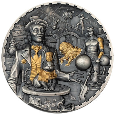 Willkommen im verrückten Steampunk Spektakel! In der fünften Ausgabe der Steampunk Serie katapultieren wir euch in eine Welt voller Magie, Kunststücke und jeder Menge Überraschungen. Stellt euch vor: Ihr stolpert ins Zirkus Hinterzimmer, wo euch ein schrulliger Magier begrüßt, dessen Hase wohl ganz eigene Tricks auf Lager hat. Oder wie wäre es mit einem Tässchen Tee mit Gewichtheber Harry? Während ihr die grazile Seiltänzerin bestaunt, könnt ihr gleich noch versuchen, den mechanischen Löwen zu bändigen. Ach, und das Grammophon? Ja, das könnte ein bisschen leiser sein. Und falls ihr den Hochradfahrer sucht, fragt doch mal den Frosch, der weiß vielleicht mehr. Die Verschmelzung der viktorianischen Ära mit dem coolen Steampunk Stil, ergänzt durch eine edle Teilvergoldung auf Antik Finish, machen diese Münze zu einem echten Highlight. |