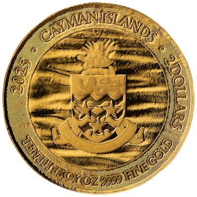 Von den Kaimaninseln (Caymen Islands) stammt diese Anlagemünze die 2017 erstmals verausgabt wurde. Die Münze ist in 1 Oz Feinsilber limitiert auf 50.000 Stück und seit 2018 in 1 Oz Feingold limitiert auf 10.000 Stück verfügbar. Daneben gibt es noch diverse colorierte Ausgaben in Polierter Platte. Die Münze zeichnet sich durch ihr schönes Design und die hochwertige Prägequalität der Scottsdale Mint aus und ist aufgrund der geringen Auflagen auch für Sammler interessant.