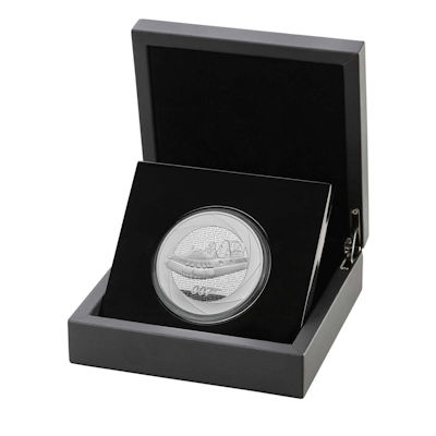 Dies ist die fünfte Ausgabe einer Serie der Royal Mint, die das bleibende Vermächtnis von James Bond feiert, Six Decades of 007. Diese Münzenserie zeigt jeweils eine ikonische Szene von Bond Filmen, die aus jedem Jahrzehnt ausgewählt wurde. Das fünfte Design zeigt das Hovercraft aus dem Film Stirb an einem anderen Tag mit Pierce Brosnans aus dem Jahr 2002.