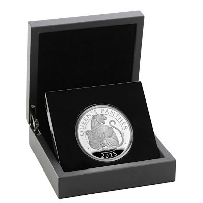 Es handelt sich hier um die 7. Ausgabe der Serie Tudor Beasts mit dem Motiv The Queens Panther. Die Münze besteht aus 5 Oz Feinsilber in der höchsten Prägequalität Polierte Platte und ist auf 125 Stück streng limitiert. Die Auslieferung erfolgt im Original-Etui mit Echtheitszertifikat.