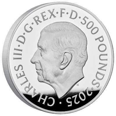 Technische Daten: Ausgabeland: Großbritannien Prägeanstalt: The Royal Mint Ausgabejahr: 2025 Nennwert: 500 Pfund Material: Silber Gewicht: 1.005,00000g Durchmesser: 100,00 mm Auflage: 50 Stück Prägequalität: Polierte Platte Verpackung: Gekapselt im Original-Etui mit Echtheitszertifikat |
