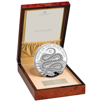 Diese Lunar Ausgabe der Royal Mint ist dem Jahr der Schlange gewidmet. Die Münze besteht aus 1 Kilo Feinsilber in der höchsten Prägequalität Polierte Platte und ist auf 50 Stück streng limitiert. Die Auslieferung erfolgt im Original-Etui mit Echtheitszertifikat.