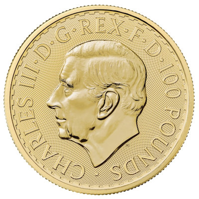 Seit bereits 1987 wird die Britannia auch in Gold von der Prägeanstalt The Royal Mint mit einer Feinheit von 916,67/1000 bzw. seit 2013 mit einer Feinheit von 999,9/1000 verausgabt. Das Motiv wechselt ähnlich wie bei der Silber Variante jährlich. Die Münze ist in den Stückelungen 1/10 Oz, 1/4 Oz, 1/2 Oz und 1 Oz verfügbar. Beschreibung zur Münze: