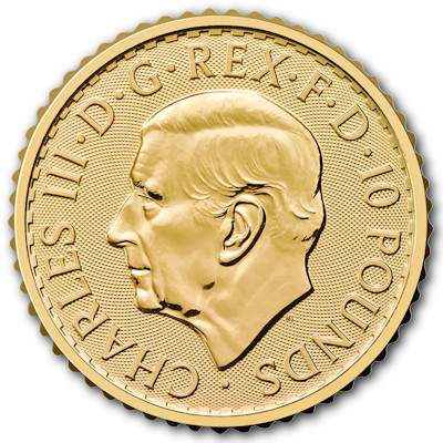 Seit bereits 1987 wird die Britannia auch in Gold von der Prägeanstalt The Royal Mint mit einer Feinheit von 916,67/1000 bzw. seit 2013 mit einer Feinheit von 999,9/1000 verausgabt. Das Motiv wechselt ähnlich wie bei der Silber Variante jährlich. Die Münze ist in den Stückelungen 1/10 Oz, 1/4 Oz, 1/2 Oz und 1 Oz verfügbar. Beschreibung zur Münze: