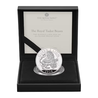<<< Großbritannien - 5 GBP Tudor Beasts (8.) The Queen`s Lion 2026 - 2 Oz Silber PP | |