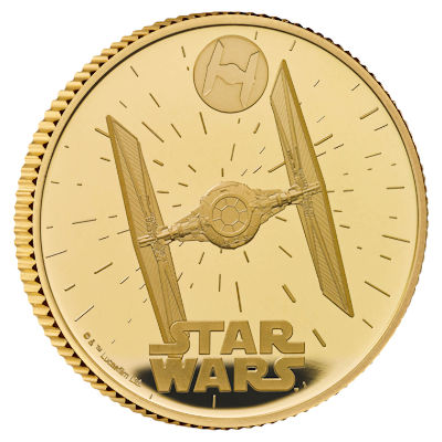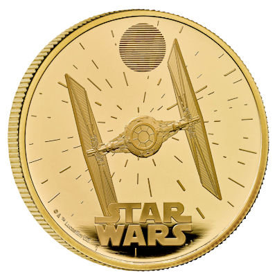 Dies ist eine neue Star Wars(TM) Ausgabe der Royal Mint. Die 1/4 Oz Feingoldmünze zeigt TIE Fighter. Die Auflage ist weltweit auf nur 250 Stück streng limitiert. |