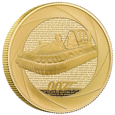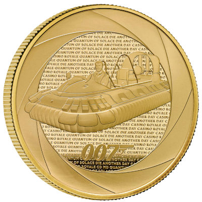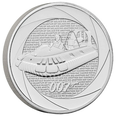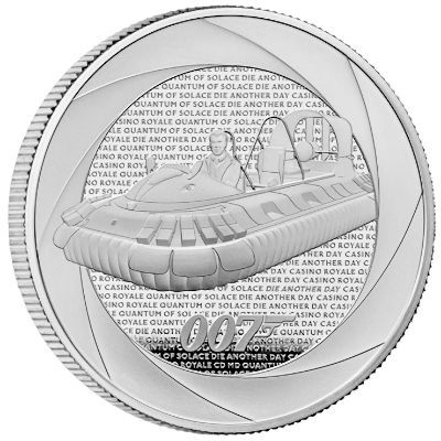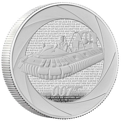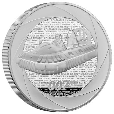 Dies ist die fünfte Ausgabe einer Serie der Royal Mint, die das bleibende Vermächtnis von James Bond feiert, Six Decades of 007. Diese Münzenserie zeigt jeweils eine ikonische Szene von Bond Filmen, die aus jedem Jahrzehnt ausgewählt wurde. Das fünfte Design zeigt das Hovercraft aus dem Film Stirb an einem anderen Tag mit Pierce Brosnans aus dem Jahr 2002. |