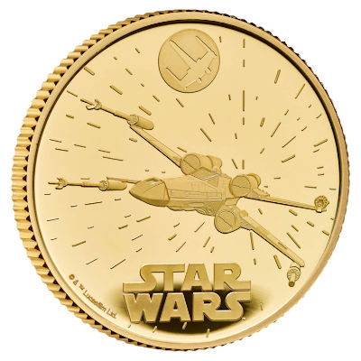 Dies ist eine neue Star Wars(TM) Ausgabe der Royal Mint. Die 1 Oz Feingoldmünze zeigt den X-Wing. Die Auflage ist weltweit auf nur 100 Stück streng limitiert. |
