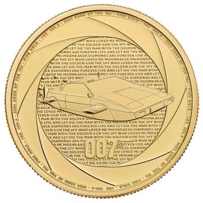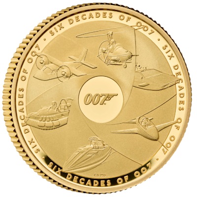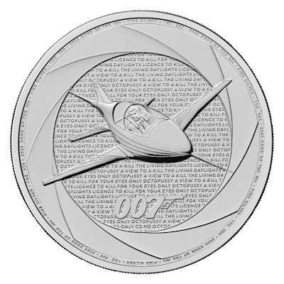 Dies ist die erste Ausgabe einer neuen Serie der Royal Mint, die das bleibende Vermächtnis von James Bond feiert, Six Decades of 007. Diese Münzenserie zeigt jeweils eine ikonische Szene von Bond Filmen, die aus jedem Jahrzehnt ausgewählt wurde. Das erste Design zeigt Bond, wie er Little Nellie aus dem Film Man lebt nur zweimal aus dem Jahr 1967 fliegt. Außerdem sind das ikonische Gewehrlauf-Logo und der Miro-Text der vielen Bond-Filmtitel enthalten. |